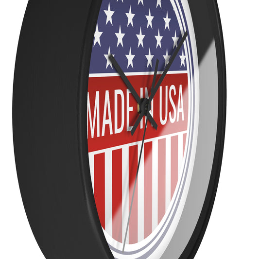 Made in USA Wall Clock - Select from Black, White or Natural Wood Frame Color - Patriotic Wall Clock - Made in USA Design, Home Decor, Americana Gift, Unique Wall Art, Independence Day Decoration