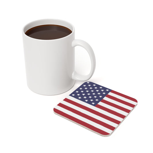 American Flag Coaster, Cork Backing 3.75" x 3.75" - Patriotic USA Flag Table Decor, Memorial Day, 4th of July Independence Day, BBQ