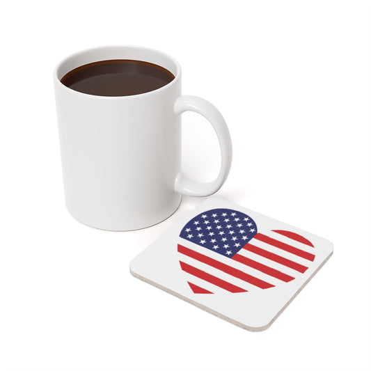 American Flag Heart Square Hardboard Coaster, Cork Backing 3.75"x3.75", USA Flag Coaster Memorial Day, 4th of July Decor, Priced per coaster
