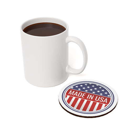 Made in USA round hardboard coaster - Cork Backing, 4th of July Decor, Patriotic Coaster - Priced per coaster