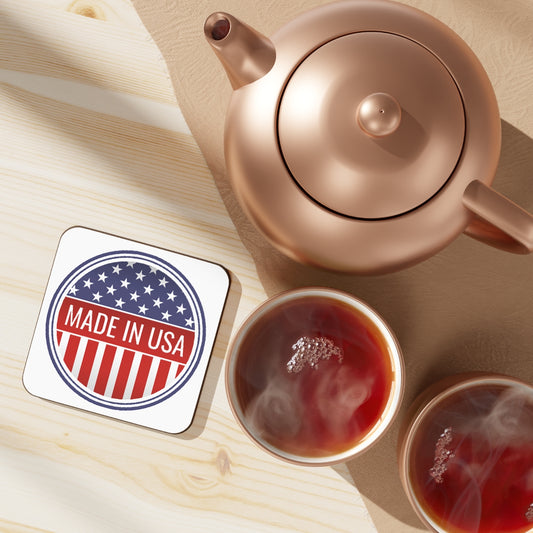 Made in USA square hardboard coaster - Cork Backing, 4th of July Decor, Patriotic Coaster - Priced per coaster