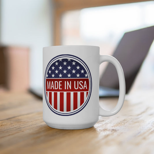 Made in USA Mug - 11 oz. & 15 oz. size options - Patriotic Ceramic Mug, Independence Day Gift, American Flag Coffee Cup, USA Drinkware