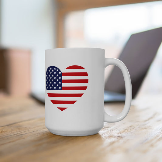 American Flag Heart Mug - 11 oz. & 15 oz. size options - Patriotic Heart Ceramic Mug, Independence Day Gift, Patriotic Coffee Cup, Love USA Drinkware