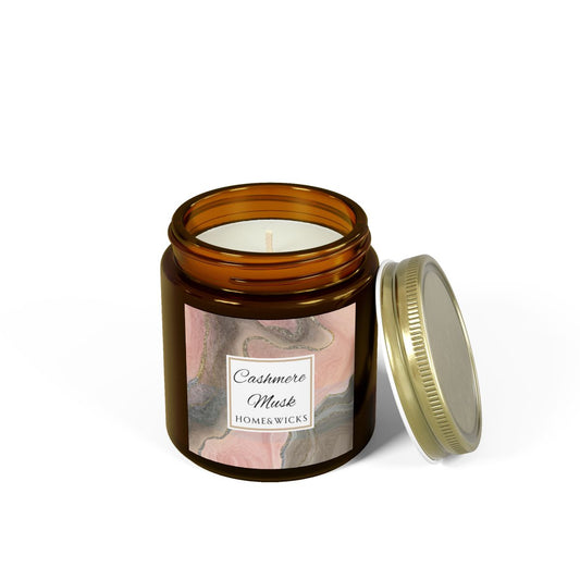 Cashmere Musk Coconut Apricot Wax Candle, 4 oz Amber Jar with Gold Lid, Cotton Wick - Luxe Scented Candle, Calming Aroma, Musk Floral Candle