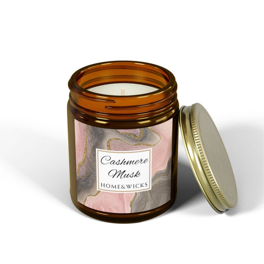 Cashmere Musk Coconut Apricot Wax Candle, Amber Jar with Gold Lid, Cotton Wick - Luxe Scented Candle, Calming Aroma, Musk Floral Candle