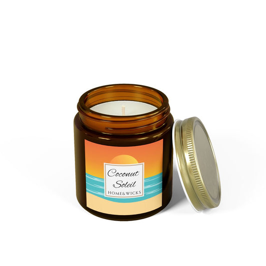 Coconut Soleil Coconut Apricot Wax Candle, 4 oz Amber Jar, Gold Lid, Cotton Wick, Summer Home decor, Tropical Decor, Beach Scent Candle