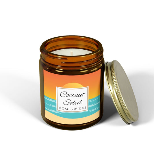 Coconut Soleil Coconut Apricot Wax Candle, 9 oz Amber Jar, Gold Lid, Cotton Wick, Summer Home decor, Tropical Decor, Beach Scent Candle