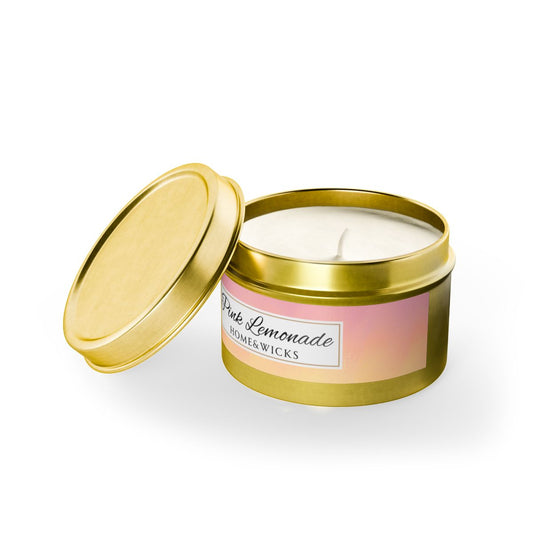 Pink Lemonade Coconut Soy Wax Candle, 4 oz. Gold Tin Jar with Lid - Fruity Scented Candle, Gourmand Candle, Summer Decor