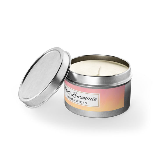 Pink Lemonade Scented Coconut Soy Wax Candle, 4 oz. Silver Tin Jar with Lid - Fruity Scented Candle, Gourmand Candle, Summer Decor