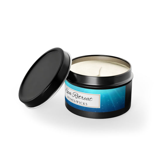 Spa Retreat Coconut Soy Wax Candle, 4 oz. Black Tin Jar with Lid - Spa Scented Candle, Relaxation Candle, Aromatherapy