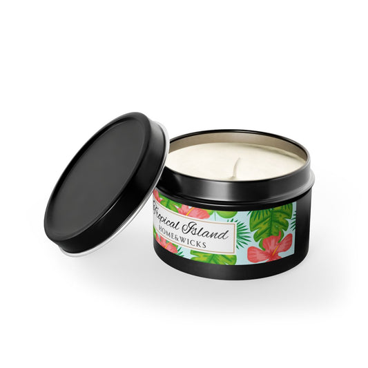Tropical Island Coconut Soy Wax Candle, 4 oz. Black Tin Jar with Lid - Tropical Candle, Fruit Scented Candle, Tropical Decor