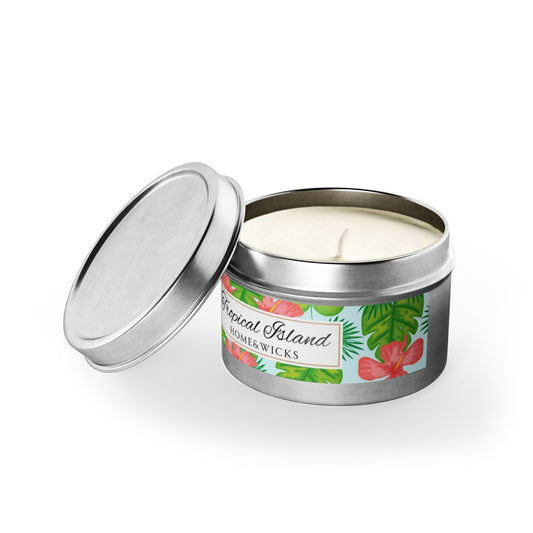 Tropical Island Coconut Soy Wax Candle, 4 oz. Silver Tin Jar with Lid - Tropical Candle, Fruit Scented Candle, Tropical Decor