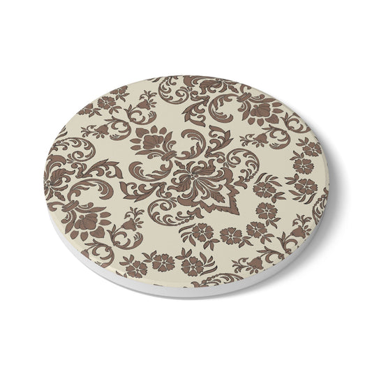 Baroque Mocha Ceramic Tile Coaster, Cork Backed - Round or Square Size Choices, Brown Damask Coaster, Ceramic Tile Coaster, Vintage Style Coaster, Thanksgiving Coaster, Fall Table Decor, Brown Ceramic Tile Coaster, Priced per coaster