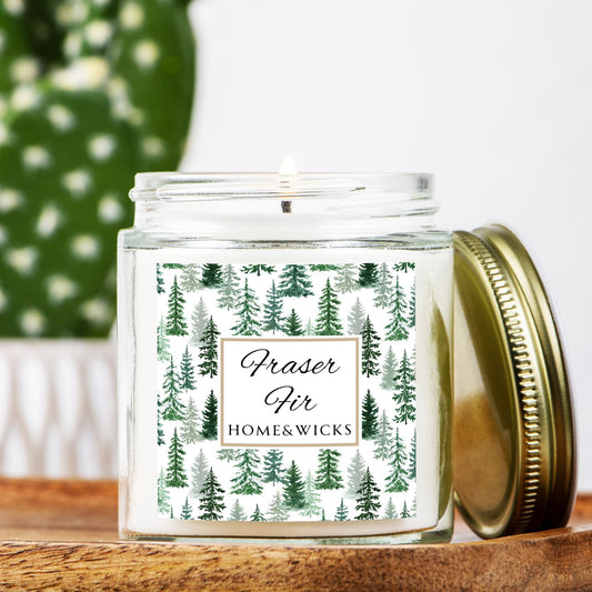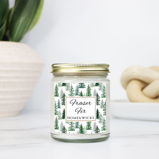 Fraser Fir Scented 4 oz. Coconut Apricot Wax Candle, Clear Jar with Gold Lid, Cotton Wick - Christmas Candle, Holiday Decor, Winter Candle