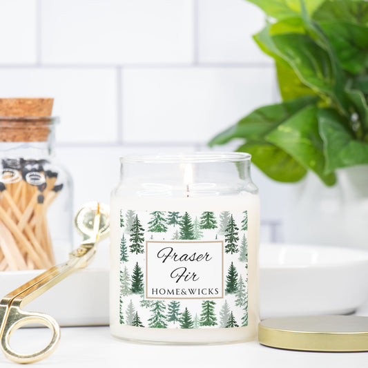 Fraser Fir 12 oz. Coconut Apricot Wax Candle, Clear Apothecary Jar, Gold Lid, Double-Wicked Christmas Candle, Holiday Decor, Winter Candle