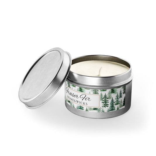 Fraser Fir Coconut Soy Wax Candle, 4 oz. Silver Tin Jar with Lid - Christmas Candle, Holiday Decor, Winter Candle