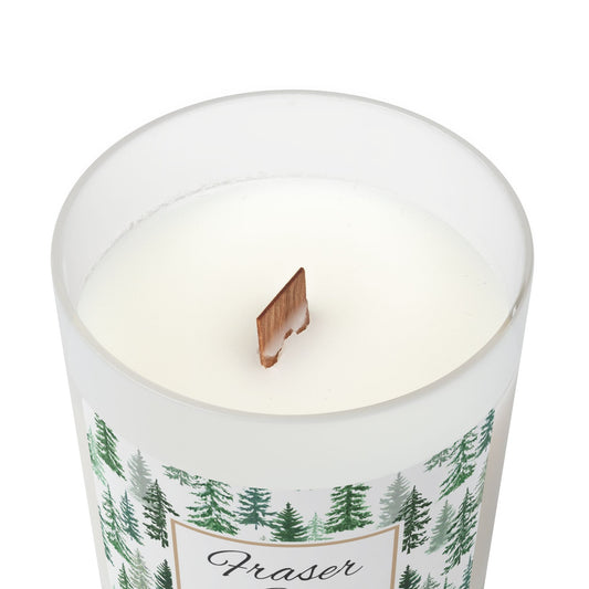 Fraser Fir Scented Coconut Apricot Wax Candle, 11 oz. Frosted Jar with Wood Wick & Maple Wood Lid - Christmas Candle, Holiday Decor, Winter Home Fragrance