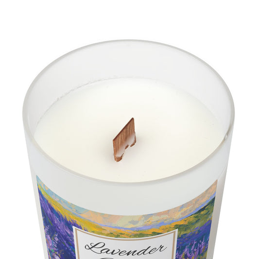 Lavender Fields Scented Coconut Soy Wax Candle, 11 oz. Frosted Jar with Maple Wood Lid - Lavender Scented Candle, Wood Wick Candle, Spa Floral Candle