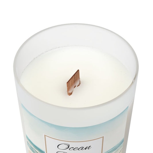 Ocean Breeze Coconut Blended Wax Candle, Frosted Jar with Wood Wick and Maple Wood Lid - Coastal Home Decor, Ocean Candle, Beach Candle