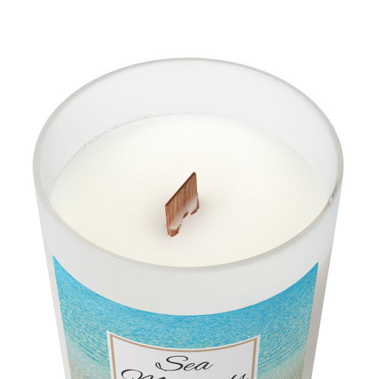 Sea Minerals Coconut Apricot Wax Scented Candle, 11 oz. Frosted Jar with Wood Wick & Maple Wood Lid - Coastal Home Decor, Beach Lover Decor, Spa Candle
