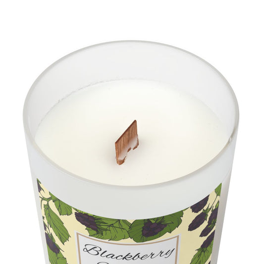 Blackberry Vanilla Coconut Blended Wax Candle, 11 oz. Frosted Jar with Wood Wick and Maple Wood Lid - Fruity Scented Candle, Home Decor Gift