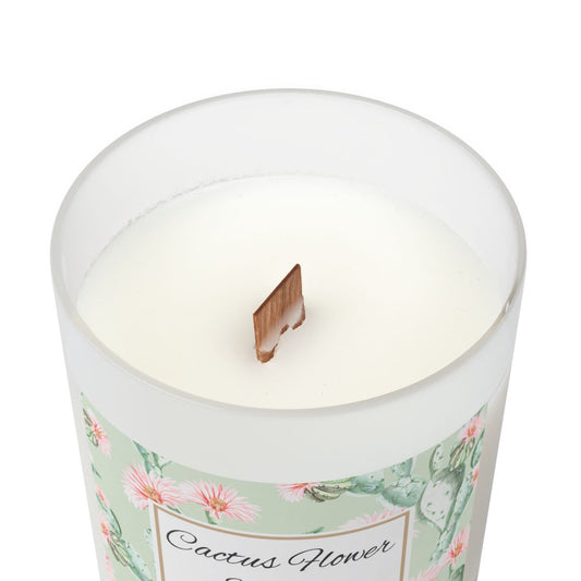 Cactus Flower & Jade Coconut Apricot Wax Candle, 11 oz. Frosted Jar with Wood Wick and Maple Wood Lid, Cactus, Western Decor, Floral Green Candle