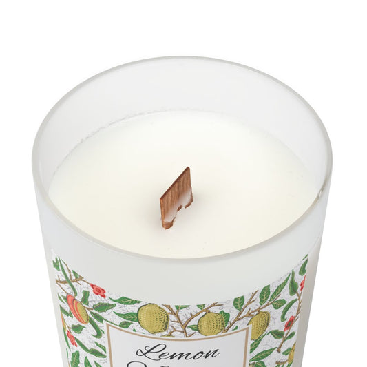 Lemon Verbena Scented Coconut Apricot Soy Wax Candle, 11 oz. Frosted Jar with Wood Wick & Maple Wood Lid - Lemon Floral Candle, Spring Summer Decor, Candle Gift, Morris Illustration
