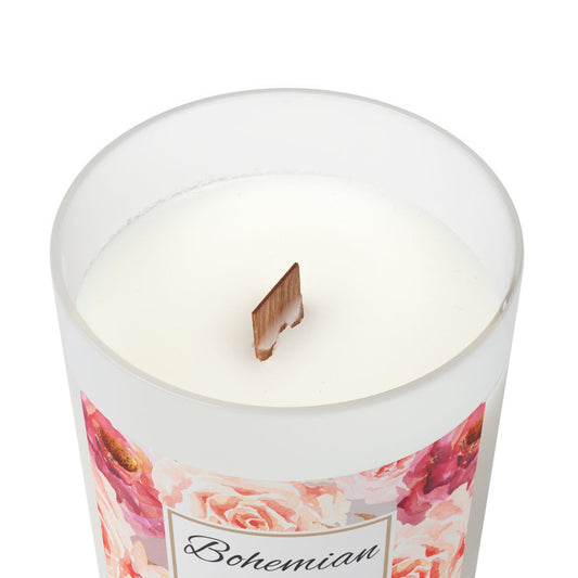 Bohemian Rose Coconut Soy Wax Candle, 11 oz Frosted Jar, Wood Wick & Maple Wood Lid, Rose Scented Candle, Floral Candle, Valentines Day Gift