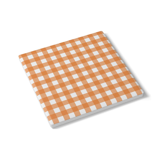 Orange Gingham Ceramic Tile Coaster, Round or Square Size Choices, Orange Checkered Ceramic Tile Coaster, Farmhouse Style Coaster, Halloween Coaster, Fall Table Decor, Orange Ceramic Tile Coaster. Priced per coaster