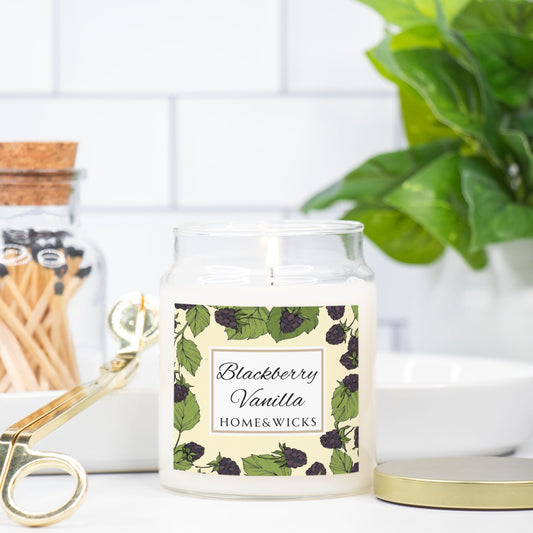 Blackberry Vanilla 9 oz. Coconut Apricot Wax Candle, Apothecary Jar with Gold Lid - Fruity Scented Candle, Fruit Home Decor, Cozy Aroma