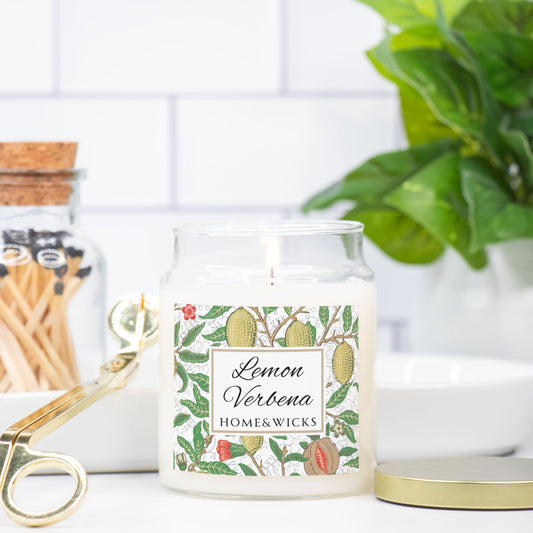 Lemon Verbena 9 oz. Coconut Apricot Candle, Apothecary Jar, Gold Lid, Lemon Floral Candle, Spring Summer Decor Gift, William Morris Fruit
