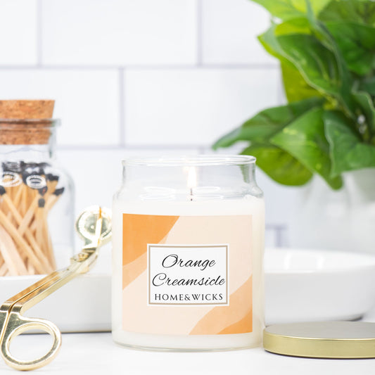 Orange Creamsicle 9 oz. Coconut Apricot Wax Candle, Apothecary Jar, Gold Lid - Summer Candle, Orange Scented Candle, Gourmand Scented Candle