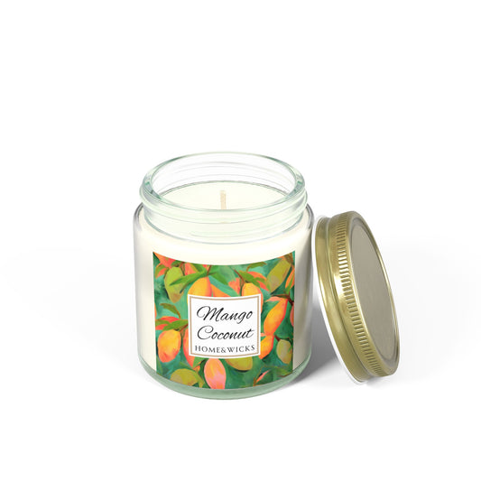 Mango Coconut Scented Coconut Apricot Wax Candle, 9 oz. Clear Jar with Gold Lid - Fruity Candle, Gift for Her, Tropical Candle
