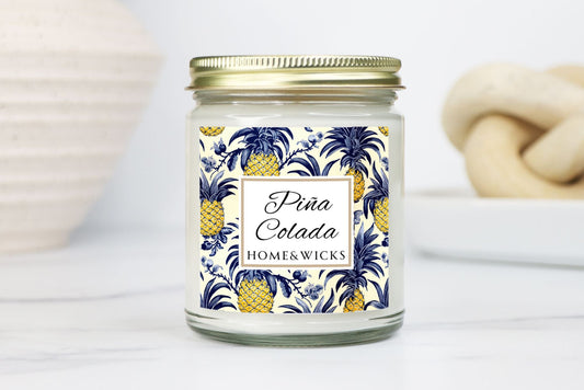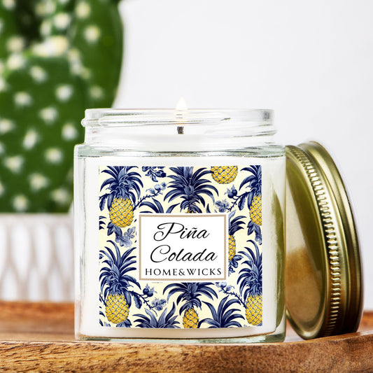 Piña Colada Coconut Apricot Wax Candle, 9 oz. Clear Jar with Gold Lid - Tropical Scented Candle, Fruity Candle, Tropical Decor