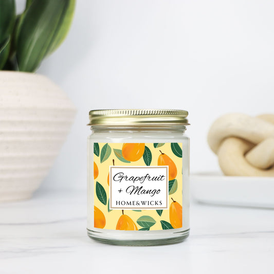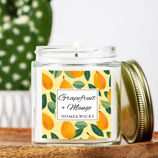 Grapefruit & Mango 4 oz. Coconut Apricot Wax Candle, Clear Jar, Gold Lid - Citrus Scented Candle, Fruity Scented Candle, Zesty Aromatherapy