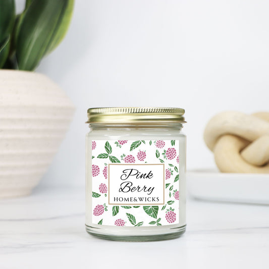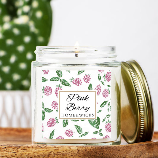 Pink Berry 9 oz. Coconut Apricot Wax Candle, Clear Jar with Gold Lid, Pink Champagne Scented Candle, Citrus Berry Candle Scent