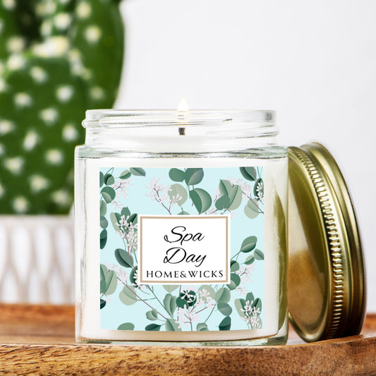 Spa Day Coconut Apricot Wax Candle, 4 oz. Clear Jar with Gold Lid - Spa Scented Candle, Relaxation Candle, Eucalyptus Sea Salt Scent Candle