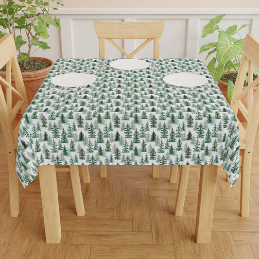 Fraser Fir Tablecloth - 58" × 58" and 58" × 102" Sizes, Winter / Christmas Tablecloth - Winter Forest Pattern Table Linen, Christmas Table Decor, Holiday Dining Tablecloth, Green & White Tablecloth