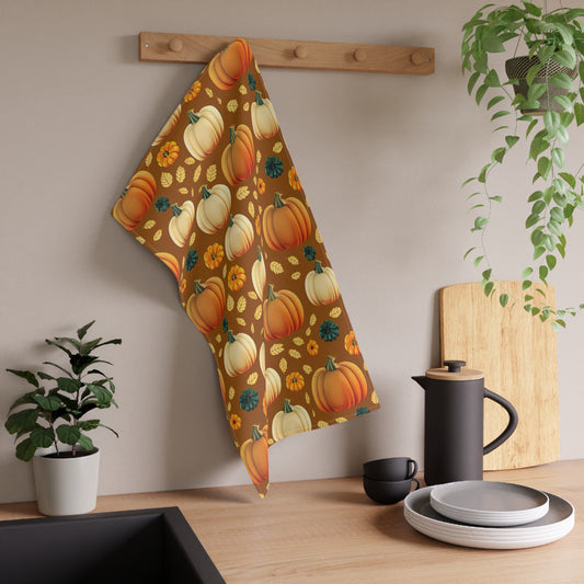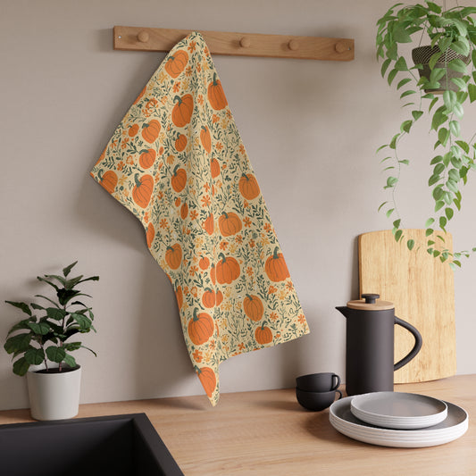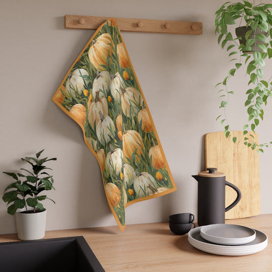 Pumpkin Patch Tea Towel 18" x 30", 100% Cotton Twill - Fall Autumn Kitchen Towels, Cotton Pumpkin Kitchen Towels, Thanksgiving Tea Towel, Gift for Housewarming, Halloween Kitchen Towel - Priced per towel