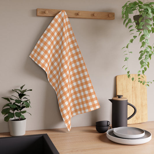 Orange Gingham Tea Towels 18" x 30", 100% Cotton Twill Kitchen Towel- Fall Autumn Kitchen Towels, Cotton Orange Gingham Checked Kitchen Towels, Thanksgiving Tea Towel, Gift for Housewarming, Halloween Kitchen Towel - Priced per towel