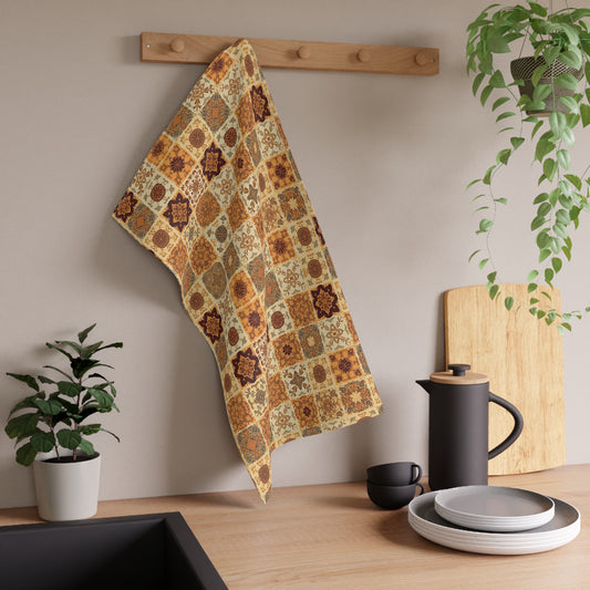 Fall Flowers Mosaic Tea Towel - 18" x 30", 100% Cotton Twill Kitchen Towels - Fall Autumn Tea Towels, Bohemian Kitchen Tea Towel, Cotton Fall Kitchen Towels, Thanksgiving Tea Towel, Gift for Housewarming, - Priced per towel