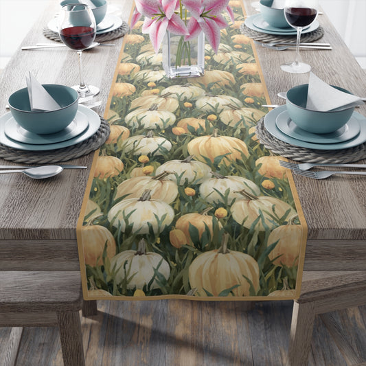 Pumpkin Patch Table Runner, 16" x 72" or 16" x 90" Sizes, Fall Table Decor, Thanksgiving Table Runner, Autumn Table Setting, Halloween Table Runner - Cotton Twill or Polyester material choices