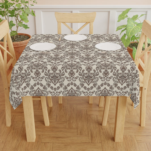 Baroque Mocha Tablecloth, 100% Cotton Twill Tablecloth, 58" × 58" and 58" × 102" Sizes, Vintage Damask Style Tablecloth, Thanksgiving Tablecloth, Fall / Brown Tablecloth, Wedding Table Linen