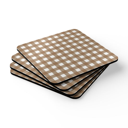 Brown Gingham Coasters - Set of 4 - Brown Gingham Checked Coaster Set, Farmhouse Style Coasters, Thanksgiving Coaster, Fall Table Decor, Brown Coaster Set