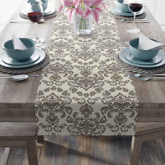 Baroque Mocha Table Runner - 16" x 72" or 16" x 90" Sizes, Elegant Damask Table Runner, Mocha Brown Table Decor, Thanksgiving Table Runner, Cotton Twill or Polyester material choices