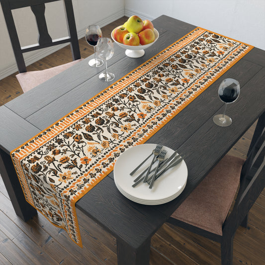 Fall Flowers Table Runner 16" x 72" or 16" x 90" Sizes - Fall Flowers Table Decor, Thanksgiving Table Runner, Halloween Table Runner, Fall Boho Table Decor, Orange & Black Table Runner, Cotton Twill or Polyester material choices