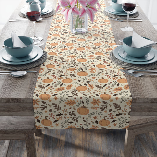 Pumpkin Patch Table Runner, 16" x 72" or 16" x 90" Sizes, Fall Table Decor, Thanksgiving Table Runner, Autumn Table Setting, Halloween Table Runner - Cotton Twill or Polyester material choices