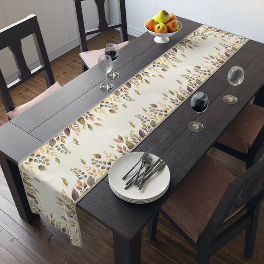 Earthy Leaves Table Runner - 16" x 72" or 16" x 90" Sizes - Fall Leaves Table Decor, Thanksgiving Table Runner, Autumn Table Runner, Thanksgiving Table Decor, Cotton Twill or Polyester material choices