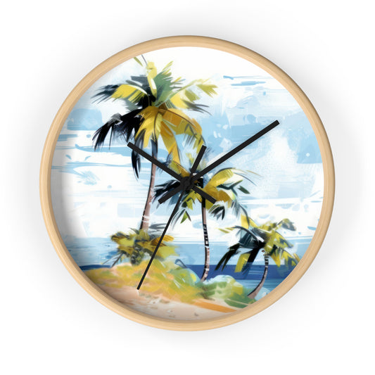 Tropical Island Wall Clock - Select from Black, White or Natural Wood Color