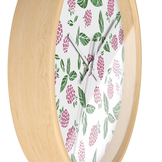 Pink Berry Wall Clock - Select from Black, White or Natural Wood Color